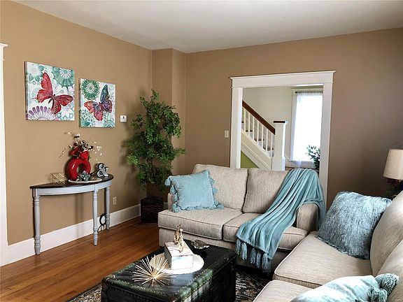 A charming 2 story brick home in nice location of Alton with a welcoming large front porch. Original wood flooring throughout the home. Home has been freshly painted and kitchen has ceramic tile counter top with beautiful wood cabinets. All appliances stay with a stainless steel refrigerator, new gas stove and dishwasher. Dining room with french doors to nice sized deck and newly landscaped yard. Large living room with fireplace (non-functional). 2 large bedrooms with plenty of closet space and nice ceramic tile bath in the upstairs, plus additional 1/2 bath on the main level. Full basement and off-street parking for 2 cars on concrete driveway. Come see this home that has many extras. You will be pleased!