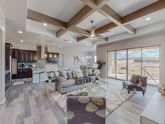 Beautiful custom home with views to the East and West. Home features 4 bedrooms, plus an attached studio casita/guest house with kitchenette, attached garage, and separate entrance! These custom finishes are sure to impress. Beautiful cove ceilings in the living area with gas fireplace will be a welcoming and impressive place for gatherings. Large primary suite is your personal retreat. Plenty of room for your toys and back yard is large enough for a pool, large garage, or anything else you can dream up! Located in fast-growing Rio Rancho. Santa Ana Star Center and Downtown Rio Rancho is just minutes away. NO PID! NO HOA! Coming soon: Block wall for back yard perimeter and front yard landscaping. Warranty that is provided is uploaded in 'Documents'