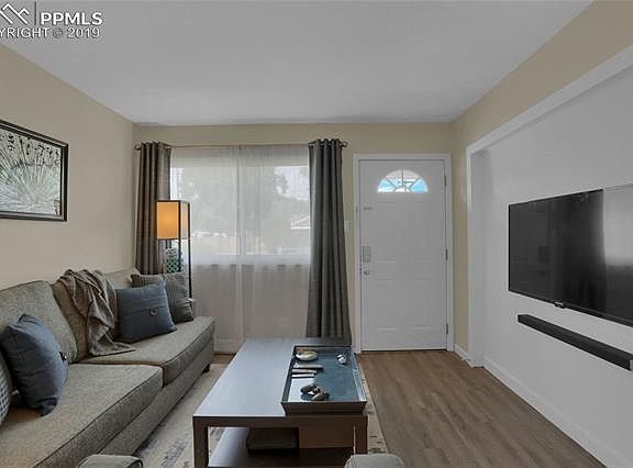 This charming rancher offers updates throughout to include fresh interior paint, laminate wood flooring throughout the living area and hallway, freshly painted kitchen cabinets, updated kitchen appliances, updated vinyl windows, and a new roof as of April, 2019. No matter the weather, you'll be comfortable with the option in the summers to keep cool in the central A/C or stay warm in the winter with the wood-burning fireplace. Entertainment is a breeze in the large back yard. Enjoy convenience in your day to day tasks as this home offers easy access to I-25 and is within a 15 minute drive to Fort Carson, shopping, dining and entertainment. Note: the third bedroom is non-conforming as it does not have a closet, it is a great space and would be perfect for an office as well. The chipped paint on the facia/trim will be re-painted by the end of October. 2019-11-07