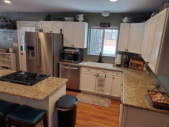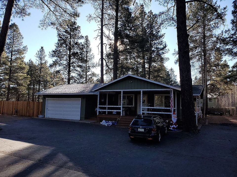 PICTURE PERFECT HOME ON A DOUBLE LOT, that provides the Flagstaff lifestyle. Relax on the wrap around front porch and enjoy one of the most inviting streets in Kachina Village lined with tall Ponderosa Pines. Watch your loved ones play on the play set or tether ball from one of the many deck areas. There is room for all of your toys plus more. There is 2 car garage with sink and electric, a 24' x 36' Separate 4 car plus garage with 10' ceiling and a 9' tall door, a 24' x 12' storage room with chicken coop, a 1 car garage with workshop, plus RV hookups and dump. Enjoy Large Bedrooms, Granite Counters, laminate wood floors in kitchen dining and living room and a wood burning fireplace with stone surround. New roof on House and Garage. Recently completed fenced in yard with large access gates. Get out and enjoy the nearby trail system, Raymond County Park and Kachina Wetlands. Don't miss out on a chance to own a slice of heaven!! Willing to work with Buyers Agents.