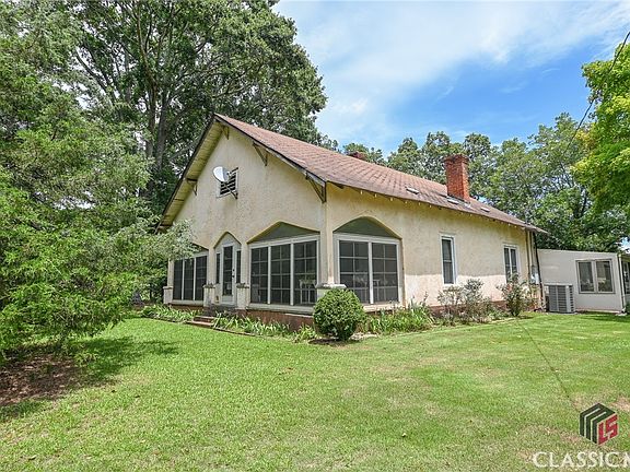 Priced below appraised value, this lovingly maintained 1915 home is in a peaceful setting overlooking mature hardwoods and pastureland in the heart of Oconee County on 2.82 acres! This home has been in the same family for generations and still has some of the original oak and heart pine wood floors and three original mantels. There are multiple porches around the home to enjoy the view of flowers and mature landscaping. There is a four seasons sunroom with a sink, a screened porch next to the kitchen and keeping room, and an enclosed front porch off the primary bedroom. The kitchen has many convenient features including an island with a sink, an appliance garage, a mixer lift, glass-fronted upper cabinets, a Lazy Susan corner cabinet, and a downdraft gas cooktop. There is a large office space with a built-in desk and wall cabinets. Energy-efficient HVAC was installed in 2021. The primary bedroom has the original floors and fireplace. A second bedroom is located off the main hallway, across from the large office. A metal outbuilding/workshop is ready for your projects! The property is connected to public water. With a few updates, there is so much potential!