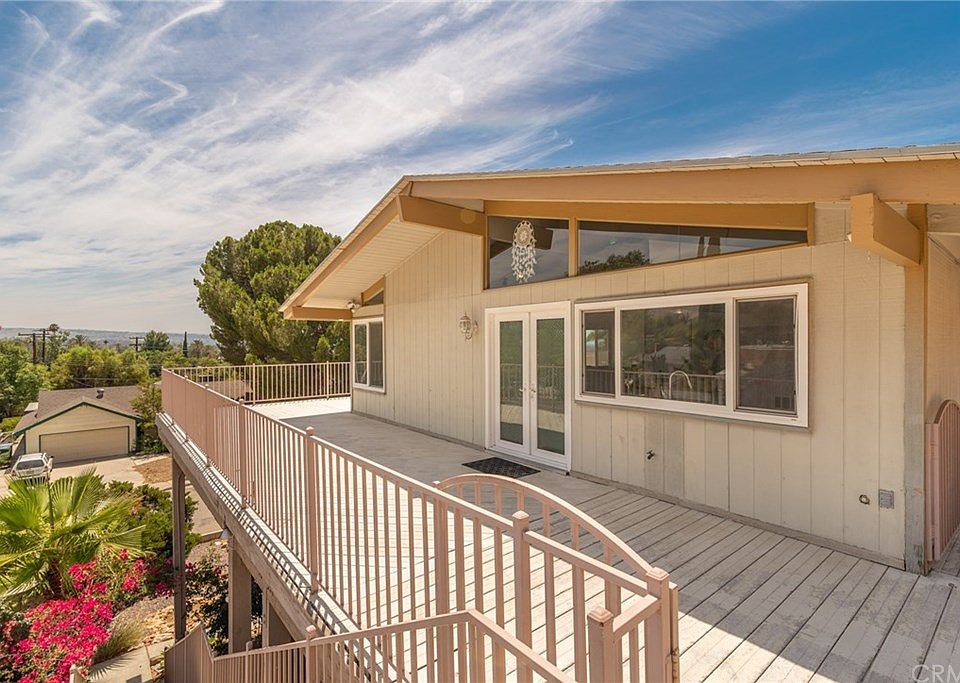 This is your opportunity for a stylized and distinctive home in Riverside. This 1969 Mid Century Modern home on stilts is nestled up in the hills of Belvedere Heights. This property is part of a 1960s custom tract that combined creative architecture with the surrounding natural landscape. If you enjoy the outdoors there are hiking trails on the Box Springs Mountains around the property. The wrap around balcony gives an expansive panoramic view of the foot hills, valleys and city view of Riverside . The outdoor area expands the living space, especially with Natural gas hookup for grill or fireplace on side and back of home . The inside of the home is designed with natural materials. The pitched roof and wood beams provide a contemporary open space while the large glass windows bring in natural light and air. The windows have custom coverings to create privacy and contribute to the simple design. This home is walking distance to the UCR campus and ten min drive to downtown . It is on a large lot with no homes behind it on a quiet cul-de-sac. Newer paint, flooring and the bathrooms and kitchen have been updated . New custom closet in master bedroom. Don't miss out on this three bedroom two full bath home with flair!