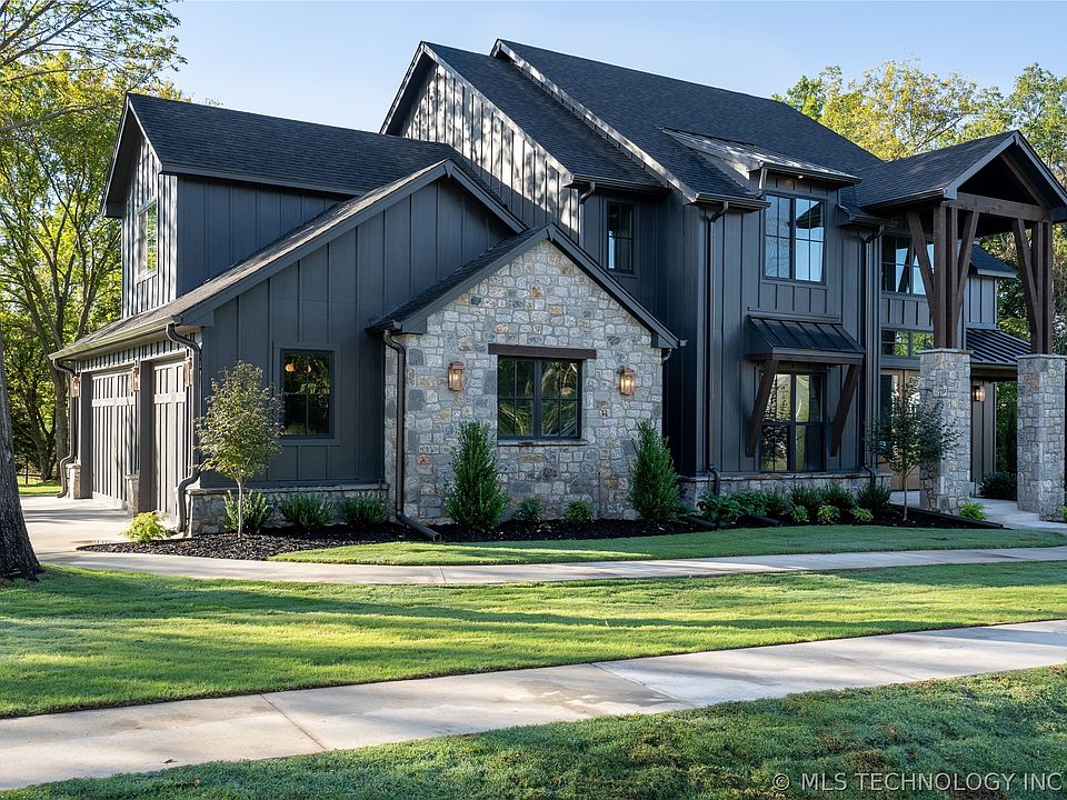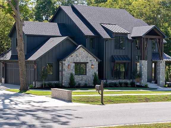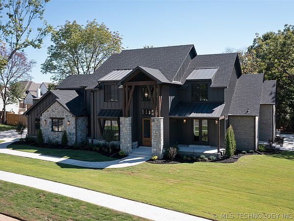 Incredible one-of-the-kind new construction home in Jenks (Bixby schools.) Superb attention to every finish selection with no detail overlooked. With almost 5,000sf of living space, this home offers an unparalleled setting for living and entertaining. This special home offers privacy while enjoying being in the neighborhood, views of woods, access to the creek in the back of the lot (not located on the property) and so much more! This home boasts 5 large bedrooms (2 down and 3 up), 2 half baths, 4 full (1 Pullman.) A gorgeous study with built-ins, 20' entry, and a curved staircase greets visitors. Once through the entry area, this home opens into a true great room featuring living room on one side, kitchen area on the other, with dining in the middle. Living Room boasts 12' ceilings, fireplace, and built-ins. Dining features a custom hutch with granite counters and the 2nd sink. Kitchen needs to be experienced to be really appreciated! One-of-the kind design of custom plaster vent hood and floating shelves, this kitchen's style is impeccable. A large waterfall counter island grounds the space and large parameter cabinets offer storage galore. A professional 48" range with 2 ovens offers ample cooking space.