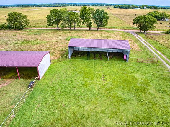 Step outside and enjoy a dream setup for ranching, recreation, or simply soaking in the peaceful surroundings. The property features a new metal roof, metal fencing on the porches, and a brand-new 1/4 mile, 5-barb wire west fence. Additional amenities include a 24x50 insulated shop, horse barn with feed and tack rooms, 30-foot covered parking for equipment, and underground electric and water spigots with in-ground shutoffs for ultimate convenience. You’ll also find a large storage shed, RV hookup, livestock lean-to, cross-fenced pastures, and pipe and barb wire fencing that encloses the entire property, with Bermuda and native grass pastures ideal for cattle or horses.