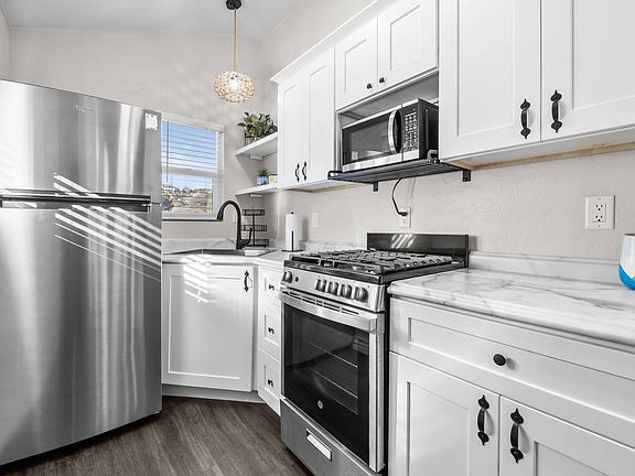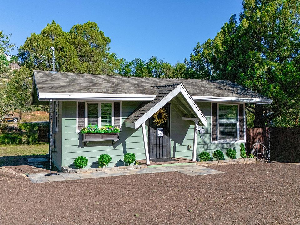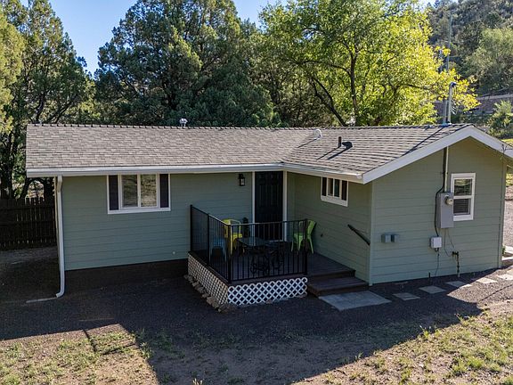 Vacation-Ready Prescott Retreat! Fully furnished and thoughtfully updated, this charming home is ideal as a personal getaway or lucrative short-term rental. Inside, you'll find stylish new luxury vinyl plank flooring, modern soft-close cabinetry, and stainless steel appliances that make hosting a breeze. A striking blue pine shiplap ceiling adds rustic mountain charm, while the spacious bathroom showcases a tiled walk-in shower with mosaic detail. Step outside to the open back porch and savor Prescott's mild, four-season climate. With major upgrades including new wiring, plumbing, HVAC, and water heater, this turnkey property offers peace of mind and endless potential—whether you're looking for a private retreat or an income-producing vacation home.