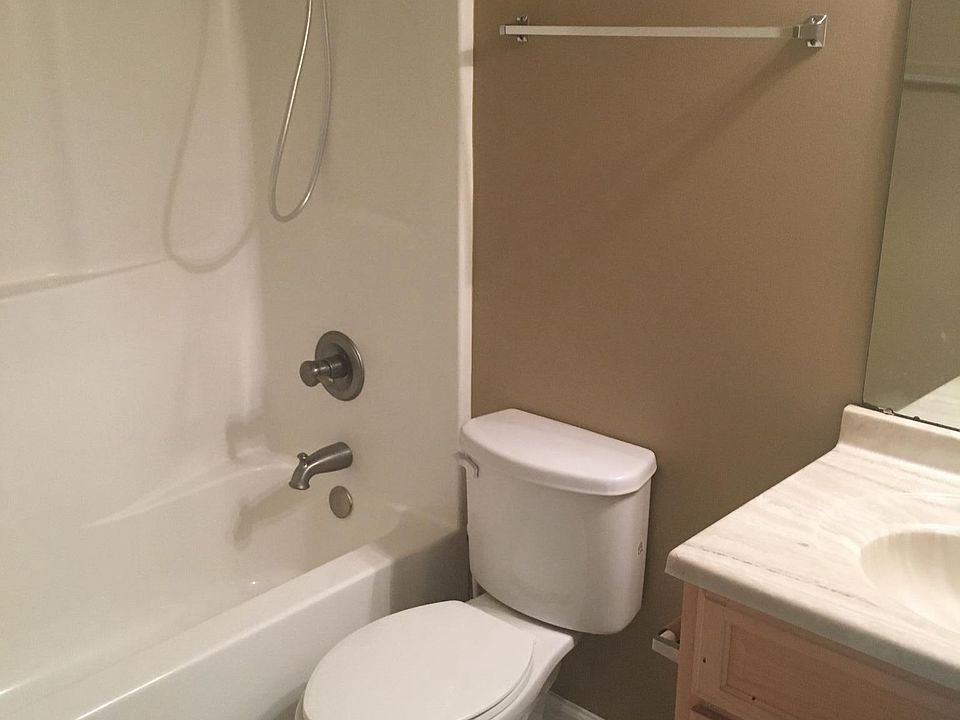 Three bedroom and two bath, tile kitchen and bathrooms, hardwood living room and hallway, laundry inside, bedroom carpet Back yard fence