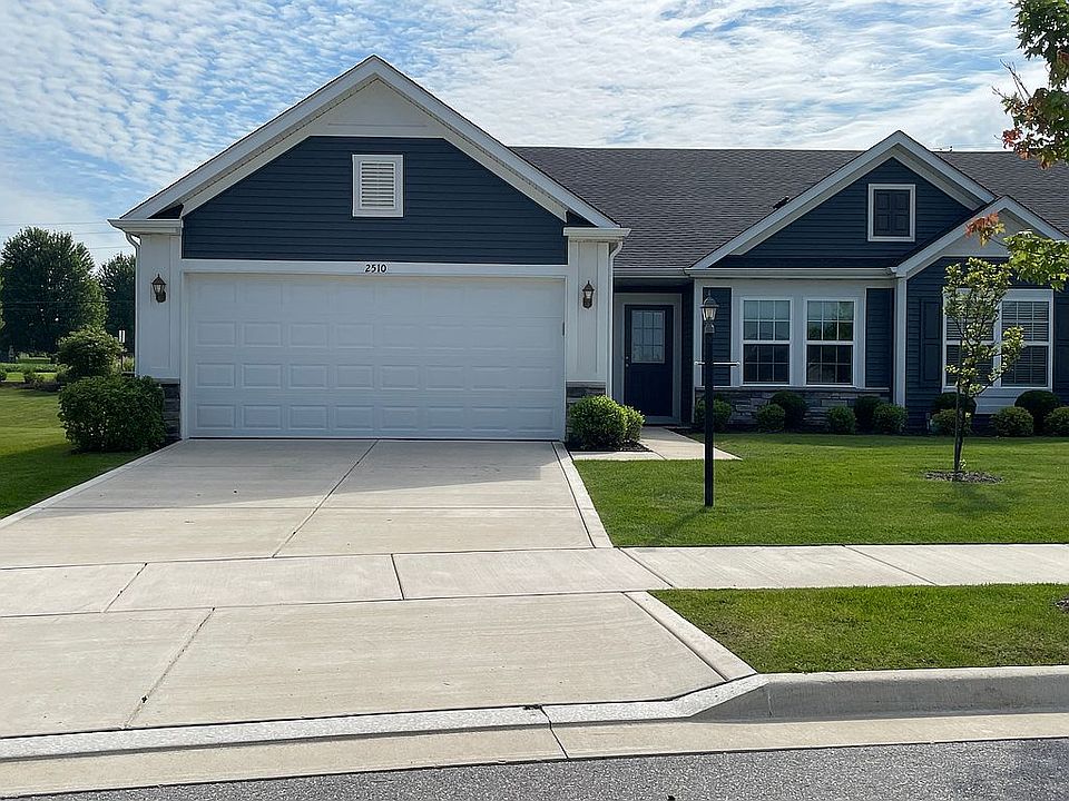 Maintenance Free Ranch-Style Home, 3 Bedrooms, 2 baths, Open Sunroom provides additional living space, Arbor Maple Painted Cabinets with Crown Molding in a trendy Willow finish, Granite Kitchen Countertops in Luna Pearl, Great Room Fireplace, Wood Laminate Flooring, Designer Carpet, SS Kitchen Appliances, Full Yard Sod, Landscape and Irrigation System and Attached 2-Car Garage. Irrigation, mowing, snow removal and landscape maintenance is included in the HOA dues.