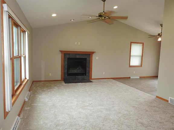 Wonderful ranch home located in a great neighborhood! 3.5 car attached garage has in-floor heat. Stay cozy in front of your gas fireplace in the living room while enjoying the openness of the vaulted ceilings. Nice, functional kitchen is open to the dining area with patio doors to a nice deck. All 3 bedrooms have great closet space. First floor laundry includes a utility sink. The large basement has high ceilings and poured walls and is waiting to be finished off. Updates include carpeting, shingles, water heaters (house & radiant heat in garage) & paint. Kitchen appliances included.