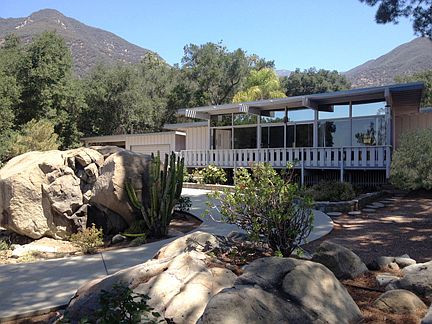Very special mid-century modern home in Ojai for lease on 1.5 acres near Thatcher private school on Ladera Rd.. Private retreat with large rooms and high ceilings: 3 bedrooms, 3 baths, two fireplaces, pool, views, many fruit trees, covered parking for 8 cars plus RV parking. Available for longer lease