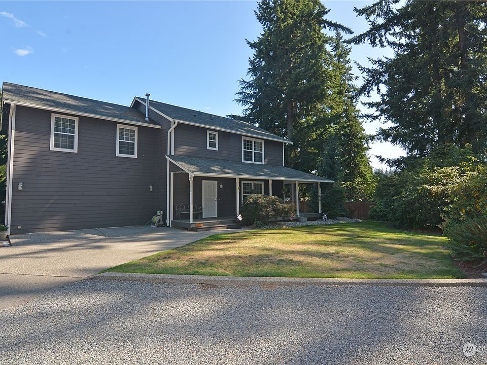 Nestled in Arlington overlooking Lake Ki, this 4 bed, 2.5 bath gem boasts something for everyone. Lake views, wrap around porch, shared private lake and dock, ample outdoor space, two separate shops, and more. Shops are 30x60 & 20x30; Lg shop has separate meter, perfect for at home business, woodworker, auto & more; Sm shop has pwr & is insulated. Enjoy the direct lake access just steps away to a private dock on Lake Ki. Large primary suite includes lake views, french doors, 2 closets, & a fireplace! This home is a quick drive to I5 between Everett & Mount Vernon. This home is exceptionally cared for giving peace of mind. Don't miss this rare opportunity where lake access & views, business, hobbies, & peace of mind meet!