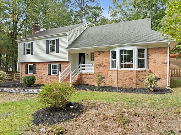 A tastefully renovated, pristine, freshly painted, and natural light-filled 2,250 SF/4 BR/2.5 bath sits on an approx. ½ acre lot in the West End of Henrico County (Short Pump), home to award-winning schools. The newly renovated kitchen consists of upgraded cabinets, quartz countertops, pantry, smooth-top stove with microwave, large farm sink, dishwasher, refrigerator, and lights. The majority of the house consists of refinished solid wood floors. The family room is outfitted with luxury vinyl tile flooring and a fireplace, and the fourth bedroom is outfitted with carpet. The first floor contains one half bathroom, the ensuite primary bedroom has a full bathroom, and the second full bathroom is located in the hallway. Approx. 80% of the house’s exterior siding is brick, approx. 20% of the exterior consists of newer vinyl. A spacious front yard and large private and fenced backyard boasts a newly built 2-car carport (concrete flooring) and storage shed. This property is a desirable find for a family looking to make a HOME for many years to come. Please make an appointment to see it today.