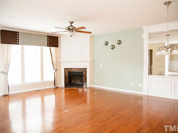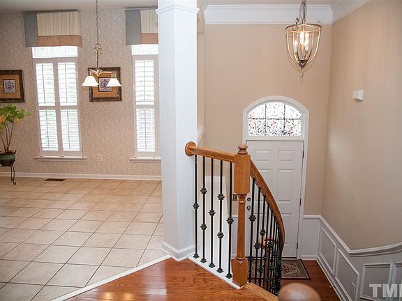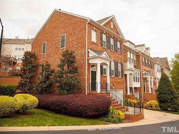 Luxury living! One owner Brick Gorgeous End-unit that was the Model Home. Largest TH in community with heated garage! Spacious & open Floor plan. Entire home w/hardwoods & tile floors! No carpet! Wainscoting, crown molding & plantation blinds. Large, full-service kitchen w/ granite countertops/tile backsplash & prep island looks into the living area. All the BRs have their own baths. Tons of storage! Location walking distance to Crabtree mall & mins from downtown! Shutters, chandelier, trey ceilings!