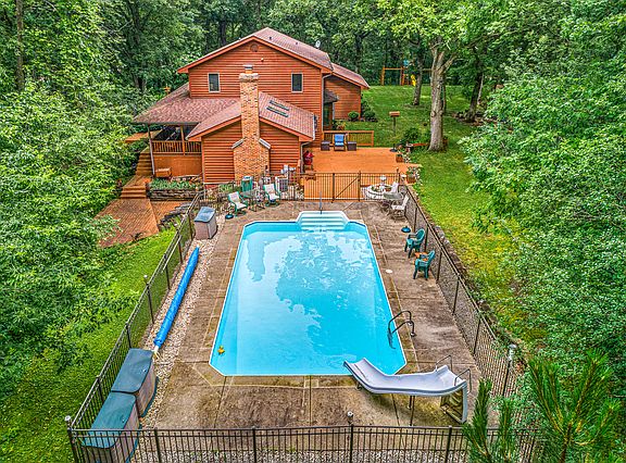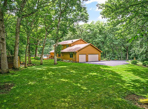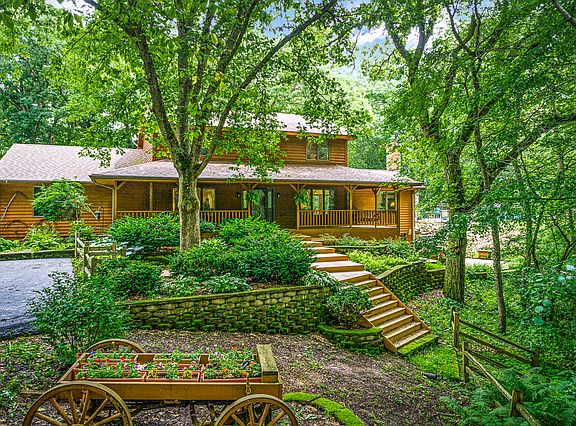 Private, secluded location feels like the north woods. Gorgeous 2+ acre spot surrounds you with nature. Beautiful home with large, open country Kitchen open to the warm, welcoming Family Room with fireplace and skylights. This charming house has a rambling feel, inside and out that will delight you! Finished walk out basement and a sunny, sparkling 31x17 in ground pool with slide and newer mechanicals. Several decks, walkways and gathering places. Perfect for entertaining. Lots of incredible amenities.
