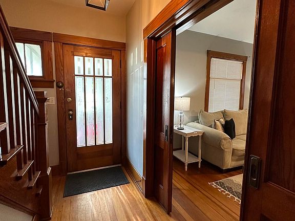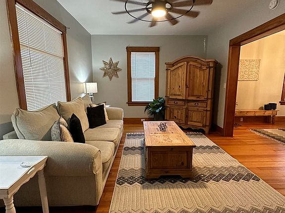 Stunning remodel highlighting the original hardwood floors, trim and doors. Complete kitchen update including granite countertops, farmhouse sink, large kitchen island, high end new appliances, new energy efficient double hung windows, Vinyl Tile Shaw flooring, fixtures, lighting and more. Half bath on main floor is also beautifully updated to match kitchen finishes. Large living room and formal dining room have original hardwood floors, stunning fixtures and fresh paint. The living room has double pocked doors that open to a large foyer and open staircase to second floor. Upstairs you will find 2 large bedrooms and private full bath. Both bedrooms have large walk in closet(s). The back yard is privacy fenced with a nicely manicured lawn. Large 2 car garage and extended driveway offers plenty of parking for your guests. Enclosed front porch to enjoy. Roof estimated 5 years old, furnace serviced annually, water heater 2023, sewer line 2023.