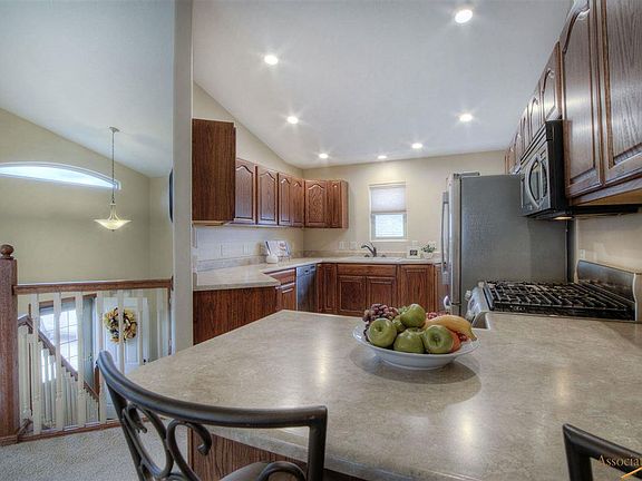 This home is a rare find! Great curb appeal w/gorgeous stacked stone accents! Large, flat backyard with friendly neighbors and loaded with the most desirable features! The mid-entry styling is ideal. The front door & garage enter to the large foyer with coat closet and room to sit down and take off your shoes. From there you go up to the main floor that has an open concept kitchen/living & dining area plus 3 main floor bedrooms including a large master suite. The lower level has recently been professionally finished with a family room, huge 18' bedroom, an office/workout room & a 3rd bathroom. Big windows provide lots of natural light throughout. 2 beautiful gas fireplaces. Lots of cabinet & counter space in the kitchen plus a convenient breakfast bar & access to the deck. Great views to the east. All stainless steel kitchen appliances stay. Plus a finished 3 car garage & convenient sprinkler system to keep the yard looking like a golf course! Freshly painted and move in ready.