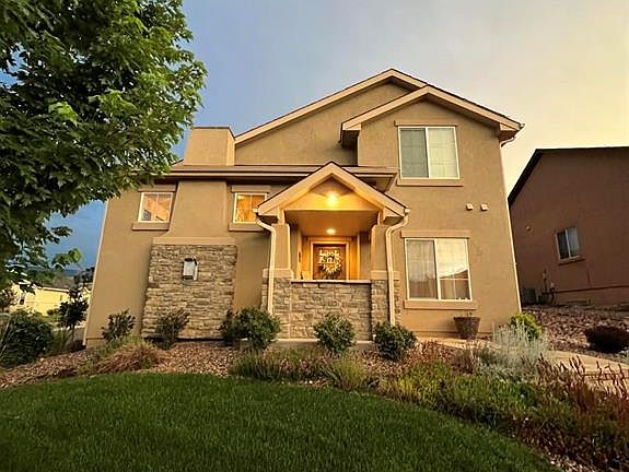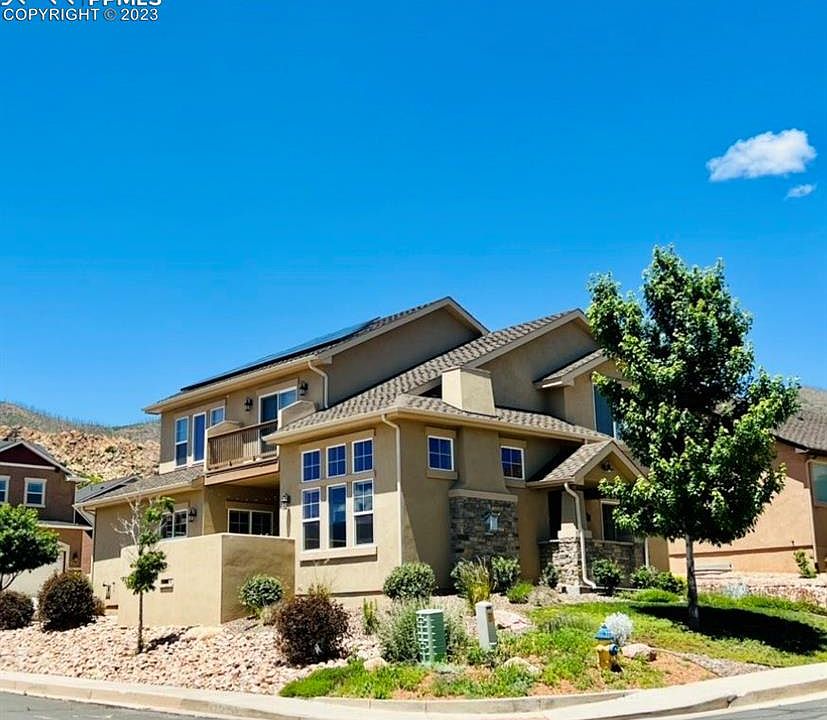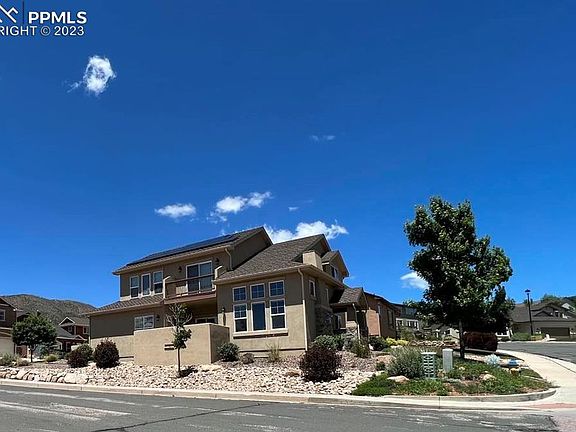 This custom designed and built 2014 4 bedroom/4 bath home features thoughtful upgrades throughout and sits majestically on a beautiful professionally landscaped corner lot with mountain views galore! With no design feature overlooked, you'll simply be amazed at this wonderful floorplan with great livability both inside and out! This lovely northwest Colorado Springs neighborhood offers easy convenience to the "Garden of the Gods", hiking, biking, shopping, restaurants, & entertainment too with ease of travel to Interstate 25! Easy to finish 5th bedroom. The kitchen Stainless Steel appliances are Kitchen Aid. The 11 solar panels are included. You'll fall in love with this home!