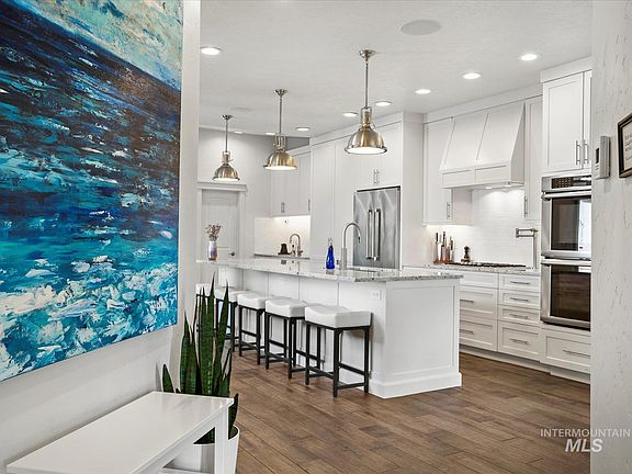 Tucked in a highly sought-after North End Boise neighborhood, this 3-bedroom, 2.5-bath home is full of thoughtful updates and timeless character. From the beautifully landscaped front yard to the inviting backyard oasis—complete with a spacious patio, garden beds, and room to entertain or relax—every detail is designed for comfort. Step inside to find a stunning kitchen featuring white cabinetry, granite countertops, stainless steel appliances, a dedicated coffee bar, and a large island perfect for gatherings. Heated tile floors throughout the main level add a touch of luxury, while the dining room includes a custom-built china hutch and the cozy living room showcases a gas fireplace, floating shelves, and vaulted ceilings that enhance the open, airy layout. Additional highlights include a new roof (2023), smart home wiring, and a floor plan that effortlessly blends functionality with style. This home truly offers the best of North End living—come see it for yourself!