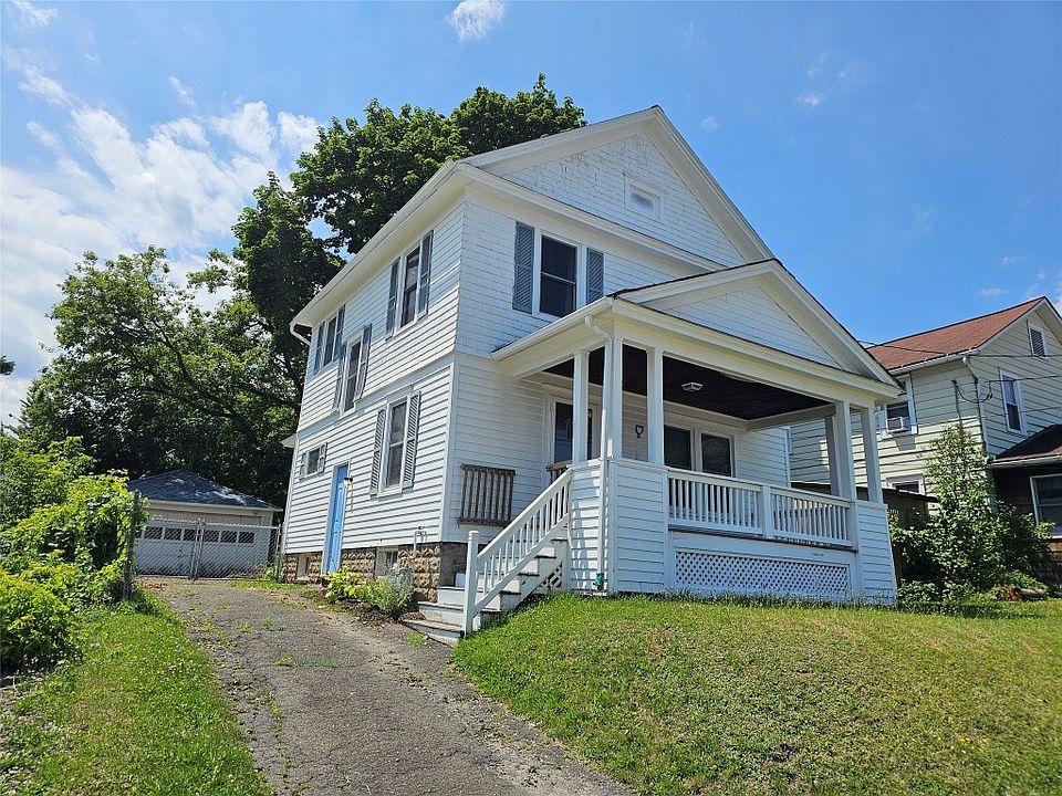 This light, and bright three-bedroom, one-bath residence in Main Endwell school offers the perfect blend of classic charm with modern amenities. From the moment you step inside, you'll be captivated by the warmth and character with classic chestnut woodwork, and crystal door knobs. Numerous updates include a furnace, hot water tank, roof, vinyl replacement windows, lots of insulation and Central AC. Loads of natural light and excellent flow through out. Lovely kitchen opens to the dining room with sliders that open to a 15x12 deck over looking the large fenced in double lot. Hardwood floors are there and just waiting for some sprucing. Schedule your appointment today!