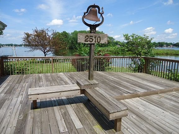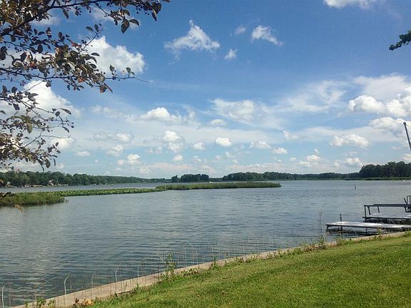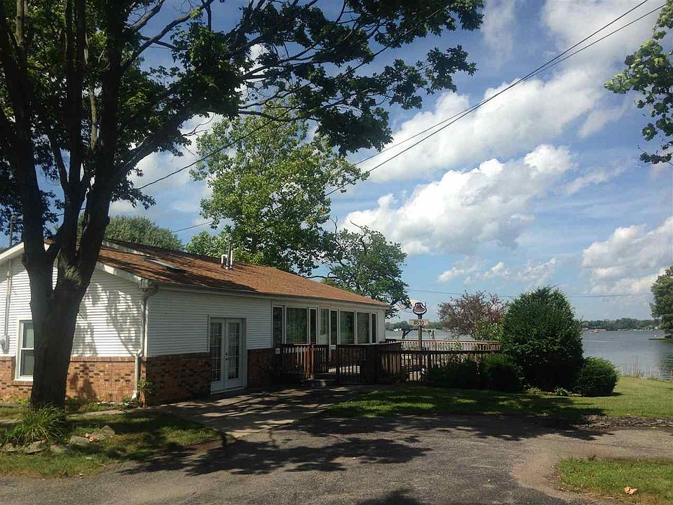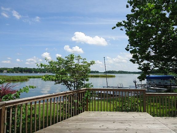 Oh what a view! Channel front 3 BR 1.5 bath home with main lake views! Located at the opening of the Lake Manitou channels, this private peninsula location sits at the end of a cul-de-sac and is so very desirable. Great yard, circular driveway and concrete seawall w/approx 200 ft lake frontage. Detached over sized garage (36x24) and open deck facing the head waters of Lake Manitou. Home sits on 2 lots and has approx 1980 sq ft finished living space: dry walled bright white walls, classic hardwood oak floors, and open concept kitchen/LR/DR. Huge kitchen island bar seats plenty of guests. Large family room w/sky light, ceramic tile floors and oak bar cabinetry. Most furnishings inside the home will stay, all kitchen appliances included, washer/dryer on main floor, and piers included. Incredible sunrise views and plenty of parking.