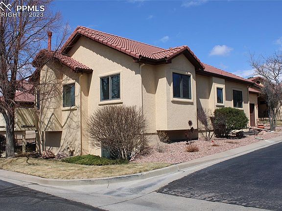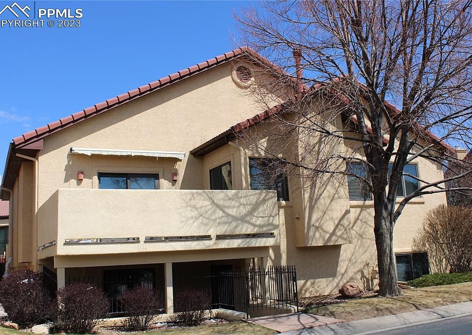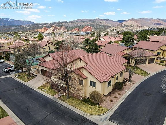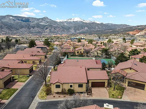 You will love this La Posada Del Sol home in a private gated community....so close to Garden of the Gods Park with its very own view of Pikes Peak off the deck. This house sits on a corner lot with plenty of natural sunlight and included in this home are 2 other patios, one off the Master with a quaint garden area and one in the walk-out basement. Everything you need is on the main level including the laundry room, but also has the basement with 2 more bedrooms, a full bathroom and spacious unfinished area for a workout room, craft room, etc. This very nicely appointed home includes built-ins, custom light fixtures, hardwood floors, solid fir doors, Pella aluminum-clad windows and an extra sitting/reading/office room that walks out to the deck. Your Master bedroom is spacious and includes a walk-in closet, attached 5-piece bath and walk-out to your own lovely patio and garden. The formal living room with gas fireplace is so comfortable to enjoy our chilly Colorado evenings. There is a breakfast nook off the kitchen along with a formal dining area to meet all your dining/entertaining needs. The radon system was installed recently, furnace in 2014 and washer and dryer stay with the property. Come enjoy main level living on the west side with Garden of the Gods a bike ride away!