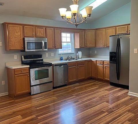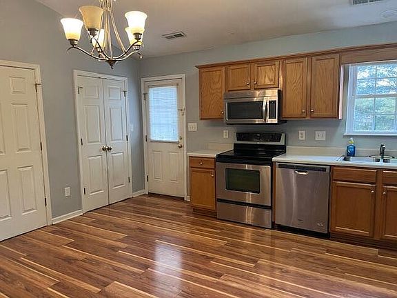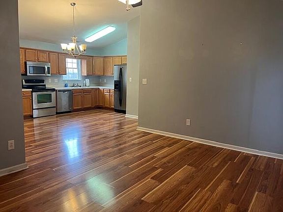 ONE LEVEL RANCH FEATURING OPEN FLOOR PLAN, PRIMARY SUITE WITH WALK IN CLOSET, LVP FLOORING, EAT IN KITCHEN WITH STAINLESS APPLIANCES, VAULTED CEILINGS, 2 ADDITIONAL BEDROOMS WITH LAUNDRY, CEILING FANS, WALK IN PANTRY AND AMPLE STORAGE ON A LARGE, LEVEL LOT WITH A PAVED DRIVEWAY. STORAGE SHED