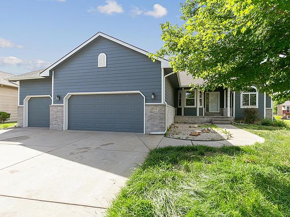 Gorgeous freshly painted ranch home, in the Goddard School District, featuring 4 bedrooms, 3 bathrooms, lovely gas fireplace in the living room, vaulted ceilings, kitchen/dining combo, beautiful dark cabinets, stainless steel appliances, main floor laundry room, dual vanity in the master bathroom, spacious bedrooms, full finished view out basement, nice storage area, 3 car attached garage, large deck and patio with a sizable backyard. Call to take a look today!