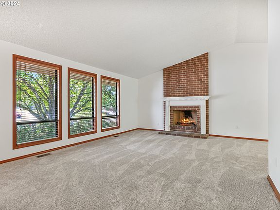 - Features: Fireplace, Living Room Dining Room Combo, Vaulted Ceiling, Wallto Wall Carpet