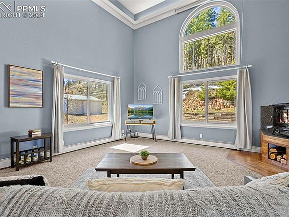 Welcome to this gorgeous, one of a kind, gated home in the picturesque Valley Park subdivision of Larkspur. This location is premier! Only a short drive from I-25 and 105 gives you the perfect blend of accessibility and privacy that is so sought after within Larkspur. Just to the north of the property, you will find not one but two renowned golf courses. Perry Park Country Club, a PGA certified course, and Bear Dance, Rated as Denver’s Best Golf Course for 8 years straight. The exterior of the property exudes nothing less than peace, serenity, and privacy. Featuring a fully fenced yard area, multiple hiking and ATV trails on the property, a 20x30 outbuilding, a 25x25 land lease providing monthly revenue & FREE high-speed internet, and an oversized drive in drive out 2 car garage. This home is a prime example of pride of ownership! Inside you’ll find 16’+ ceilings, abundant natural light, and a large wooden deck with some of the best, unobstructed, east facing views in the city - a feature found consistently throughout the home! The kitchen is a chef’s kiss, boasting textured granite counters, a gleaming glass backsplash, stainless steel appliances, a deep graphite sink, and a huge walk in pantry. Your main level master is a true oasis offering a generously designed floor plan, a massive walk in closet, with custom built ins, and a tastefully remodeled bathroom with 24” heated tile floors, stone surround shower, and large soaking tub. The walkout basement has a massive theater screen and has been pre wired for home theater speakers and a projector. You’ll find a full bath and an additional two bedrooms on this level, both able to accommodate a king size bed and all furnishings in your possession. Mechanicals can be found in the basement including radon mitigation system, water filtration systems, and plenty of space for extra storage. This property is seriously one of a kind; you won’t want to miss out on the opportunity to call this home yours!