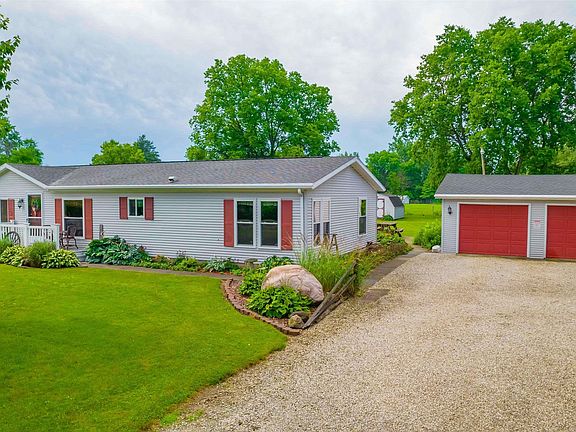 This well maintained & upgraded Manufactured home could be yours. Located on a 2.05 acre lot on a quiet dead end street features, 3 bedrooms, 2 full baths. Family room is open to dining room & kitchen for a comfortable relaxed space. Large kitchen w/appliances are included as well as the mobile island. Flooring in kitchen & dining room is only a year old as well as family room & hall carpet. Remainder of flooring as all been replaced in recent years as well. All interior doors are new solid wood, including closet doors. Lighting, plumbing also updated. Home has several walls that have been drywalled over original walls including All 3 bedrooms, hall, bath & laundry along with some new trim. One year old pressure tank & well pump, Electric Forced air furnace & Central air are only 3 years old & on a maintenance contract, each unit serviced 1 time a year. Cost is $180 year w/Home Comfort Experts. Washer & dryer are included as well in the laundry room. Windows are nice Vinyl replacement 11 years old. Tanning bed stays, plumbing from old tub is under floor if a buyer wanted to remodel main bedroom bath. 2 extra large car detached garage, open & covered deck & Patio in back w/wood stove for a great evening out. Total electric budget is $225 month. Water softener rented from Eco Water.