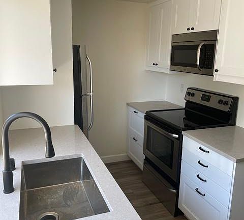 Recently remodeled unit in a quiet complex. Upgrades include luxury vinyl flooring downstairs, new carpet upstairs, fresh paint, both bathrooms completely remodeled, brand new kitchen with new dishwasher and smart washer and dryer in unit and stainless steel appliances. AC was replaced in the last 5 years. Unit has a detached 1 car garage and 1 assigned parking space. There is guest parking within the complex. Great storage options both inside the unit and in the garage area. New dual-pane windows are scheduled to be installed in August. Complex is in a park-like setting and has a pool. More photos expected by 6/19/2022. No smoking in unit. SDG&E and water to be paid by tenant. Parking by tenants to only occupy the garage and assigned additional unit. Guest parking may be occupied by a guest for up to three (3) days. Pet Deposit required.
