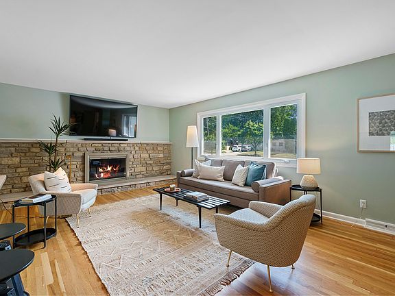 Fantastic home on .28 acres that is completely updated, modern and move-in ready! This highly desirable open floor plan includes a large Great Room, dining area, and kitchen with island seating. Great Room features hardwood flooring, gas fireplace and built- in shelving for home office. Kitchen highlights include white cabinetry, quartz counters, marble backsplash, stainless appliances and large pantry. Dining area opens to 3 season screened porch and expansive, fenced back yard. Spacious bedrooms include en-suite primary bedroom + 2 bedrooms and hall bath. Updates: driveway + turnaround '20, new HVAC with Nest '21, gutters '22, garage door '22, sump pump'22 + more! Close to schools, parks, shops & restaurants. Minutes to freeways and airport. (In contract, open house cancelled.)