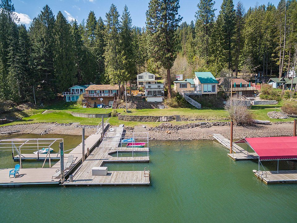 Two homes on one amazing waterfront property on Lake Coeur d'Alene. Turn key home with everything included. This is a rare opportunity for your family and friends or a great investment opportunity as a vacation rental. Enjoy the privacy and peacefulness of Cleland Bay with 50 ft waterfront, spacious dock, plenty of room to enjoy the lake and entertain! Three decks, a patio, grassy area, dock, fire pit - what more could you want! Plenty of parking and space, this property has slept up to 21. Easy access to Spokane and Coeur d'Alene. Schedule your appointment now to check out this waterfront retreat! Take a virtual tour.