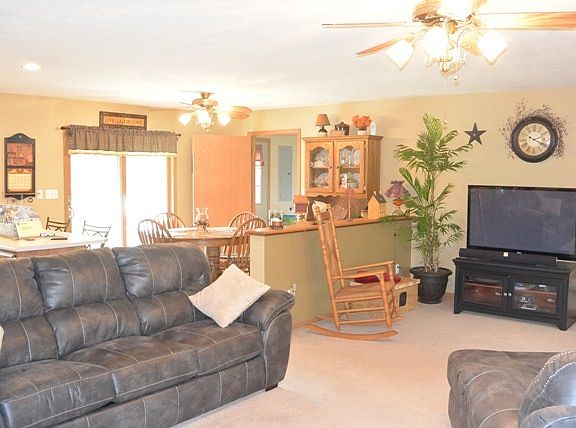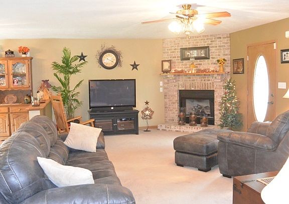 Country serenity and a front porch to rock on! This 3 bedroom 2.5 bath ranch home is located only minutes to the Vigo Co line. This open concept home offers a fully applianced eat-in kitchen that opens up to a large and comfortable living area with a brick fireplace for those upcoming fall and winter nights. The MBR offers a large walk in close and its own MBA as well as sliding glass doors to your covered back porch that runs the entire length of the home. No stairs to climb as this home offers a laundry/mud room all on one level. This home also offers a 3 car attached garage as well as a 2 car detached garage/workshop. Room to garden or roam as this home sits like a gem on 2 acres. Don't miss out on this one!