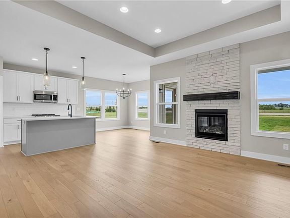 The PELHAM PARK by CENTURY HOMES is a 4 bedroom 3 bathroom reverse with a 2 car garage. This home offers a spacious primary bedroom with double vanity and shower in the primary bathroom. The primary closet flows into the laundry room for convenience. On the front of the home offers a second main floor bedroom and full bathroom with shower and tub. The Lower Level features a large recreation room and TWO additional bedrooms and bathroom with shower. Prairie Trace has amazing amenities including an upscale swimming pool with slide, pickleball court, playground area, outdoor fireplace and poolside pergola!! Exceptional Highway access!! Square footage and taxes are approximate. ALSO-No special assessments in our community!! PICTURES ARE OF PREVIOUS MODEL AND MAY INCLUDE UPGRADES NOT INCLUDED IN THIS HOME. Estimated completion early July 2024 (PTM50)