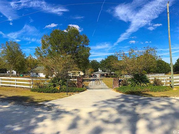 Welcome to the equestrian lover's dream! This picturesque horse farm features 5 no-climb, fenced pastures, a 4-stall run and a ten stall barn with tack room, feed room, full bath, hot and cold water, fly spray misting system, center aisle fans, rubber stall mats, automatic waterers and grooming area. The sprawling main house features wood floors, decorative columns, an open kitchen with Corian counters, wood cabinets, a sparkling pool, cozy fireplace and a spacious loft with two bedrooms, a full bath and an exceptionally large bonus area. The extraordinary, in-law addition includes two bedrooms, a kitchen and it's own family room. A separate guest house/ garage makes a perfect bunk house for ranch hands with a private upstairs BR, kitchenette and downstairs common space. All of this is beautifully located with an easy commute to Gainesville and a quick 40 minute drive to Ocala.