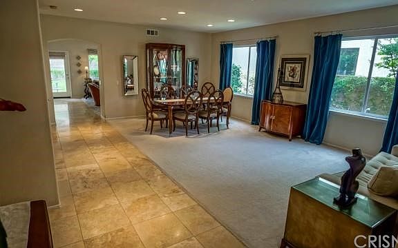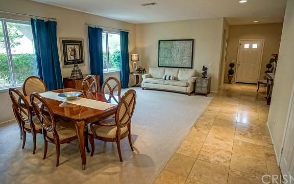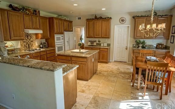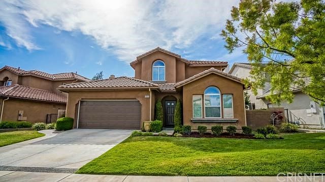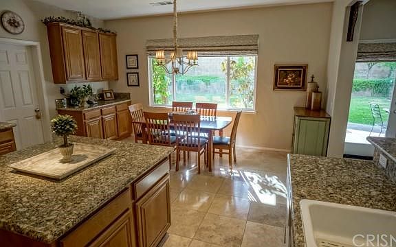 Rare Find. Stevenson Ranch. Wonderful home near end of street. Features: Chefs Kitchen with granite counters and back splash, center island and generous walk-in pantry. Kitchen opens to spacious family room with inviting fireplace (gas or wood burning). Separate formal dining and large formal living room area. Family room is wired for surround sound. One bed + full bath downstairs. Entire first floor is travertine tile and plush carpet. True 3 car garage, Plenty of storage. Great neighborhood; close drive to hiking/biknig trails, restaurants, Starbucks, shopping, and 5 freeway freeway access. Truly a great property. MUST see!!