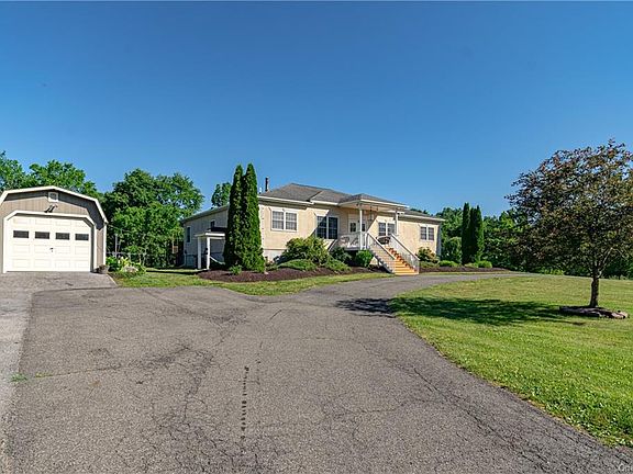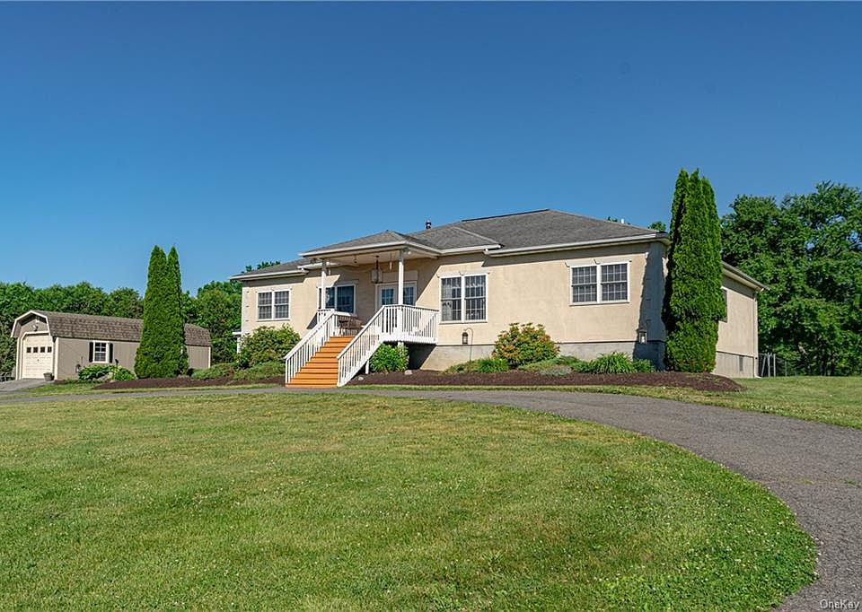 Unique, 2552 sq. ft. contemporary custom stucco ranch with dramatic open split bedroom floor plan, set back on 3.6 level, parklike acres, with a flowering pear tree lined circular drive a 2 tier deck and above ground pool to relax and entertain. Approx. 1500 sq. ft. finished walkout basement for additional space. Enjoy soaring ceilings, rounded walls, central air, ceramic tile, hardwood & pergo floors, 3 sets of French doors & windows galore. Prepare great culinary delights in a designer kitchen with large center island, stainless steel range and refrigerator. Spacious maser bedroom with private master bath, his & hers closet. Sit on your front porch and watch the sunrise & hear the sounds of birds. Close to restaurants, village shopping, golf and parks in the town of Montgomery.Why wait for the ease of one level living!