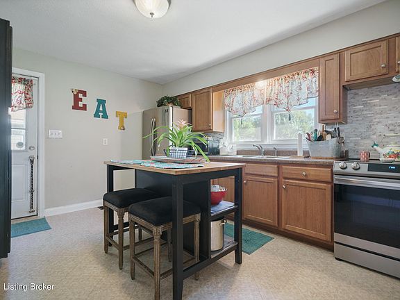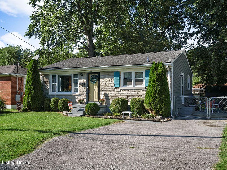 Adorable Bedford Stone ranch home with a fenced in back yard! When you enter the home you will notice the large picture window in the living room allowing tons of natural light inside. Arched doorways lead to the hallway and the eat-kitchen which also features a passthrough window and plenty of cabinet space for storage. The back yard has plenty of mature trees that provide ample shade in the hottest part of the day. This home is conveniently located close to Dixie Hwy with easy access to the Watterson Expressway for an easy commute around the city. Don't miss out on this home - schedule a private showing today!