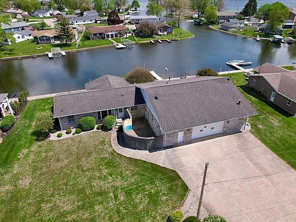 Lake Manitou channel front brick home on double lot! Enjoy 151' of water frontage with 2 piers, 3 bedrooms, 2.5 baths, approx 2187 finished sq ft and an incredible 2 car PLUS garage. The attached heated garage (49x30 & 27x21) offers incredible space for lake toys, vehicles or workshop use! Lakeside sun room has great views of the water. Vaulted living room, split floor plan and dining area. Primary bedroom has new carpet, fresh paint, private bath w/walk in tub and closet. Kitchen has granite countertops, all appliances stay including washer/dryer and upright freezer. Private walled off patio area previously used for hot tub. Addn'l perks: on demand gas water heater, whole house generator, and lawn irrigation. Immediate possession available = Start enjoying lake life now!