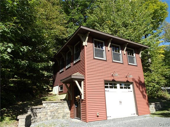 Walking into a majestic open floor plan on first floor you will find a beautiful entry way with tile flooring, with living room/dining combo with beautiful flooring throughout, a wood stove to curl up to on those winter evenings, beautiful kitchen with cherry cabinets, breakfast bar and stainless steel appliances, first floor bedroom, and first floor full bathroom. Second floor has 2 more bedrooms and full bathroom. Third floor has bonus room, currently used as an extra family room. The location could not be more perfect if you are an outdoor person, right down the road from Greek Peak Ski Resort, adjacent to Tuller Hill State Forest, and next to the Finger lakes hiking trails, or if you like the privacy setting.