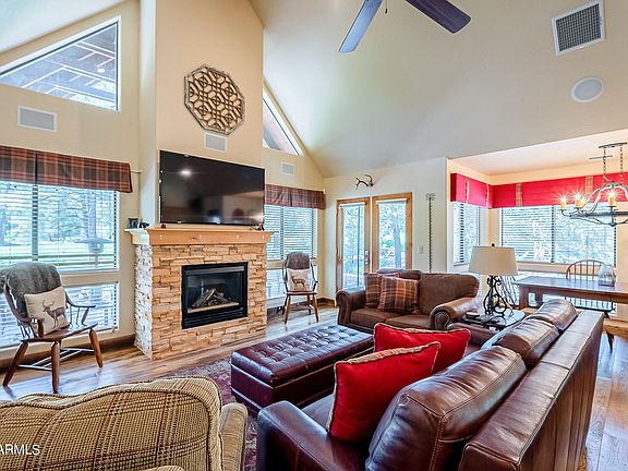 Nestled in the PONDEROSA PINES, this perfect MOUNTAIN GETAWAY features 1786 sq feet with 3 bedrooms(2 EN-SUITES), 3 bathrooms, VAULTED & BEAM ceiling, gorgeous STONE GAS FIREPLACE, reclaimed BARN WOOD floors, and a perfect spot on the GOLF COURSE recently APPRAISED at $800K. The kitchen boasts S/S VIKING appliances, KNOTTY ALDER cabinets, GRANITE countertops with a large BREAKFAST BAR. Walk out your back door to this incredible SWEEPING PATIO with VIEWS of the 17th FAIRWAY, a GAS FIRE PIT, and plenty of space for ENTERTAINING. Chaparral Pines has a 27,000 sq foot CLUBHOUSE, an 18 hole CHAMPIONSHIP golf course, an 8 ACRE TRAILHEAD Park featuring SWIMMING pools, FITNESS center, dog park, sport courts, and a children's activity center. This property is a mu