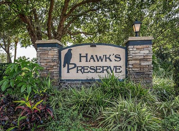 HOME COMES WITH SELLER PAID HOME WARRANTY THAT COVERS: A/C, Heating, Dishwasher, Refrigerator + Ice Maker, Garbage Disposal, Oven/Range, Microwave, Water Heater, Plumbing, Electrical, Circuit Boards, Annual Tune-Up, and more! Pet friendly - no weight restrictions on dogs! HOA dues are just $53/month! Hawk's Preserve is close to everything! 7 minutes to Publix, 15 minutes to The Forum, and more. Immaculately kept home with huge fenced-in yard and Western exposure on a 1/4 acre lot! Wide open floor plan with large covered & pet proof screened lanai (lower screen panels). In addition to 3 bedrooms, the front entry has two large rooms to either side, which can both be used as a den, hobby room, sitting room, etc. Newer stainless steel appliances, recent professional total A/C air duct cleaning, surround sound ceiling speakers in the living room, large bedrooms, separate master bath tub and shower, and 2 car garage. Hawk's Preserve has a large children's playground in addition to this beautiful fenced yard. High ceilings, open floor plan, and move in ready! Home currently has a $4,000 whole house water filtration system & kitchen reverse osmosis that is negotiable.