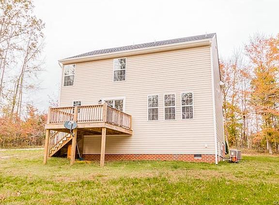 Wow!! ALMOST BRAND NEW HOME located at the end of a cul-de-sac on 1.64 acres backing up to a wooded area that will not be developed. This home is located just minutes from Interstate 64 and ONLY 15-20 MINUTES to Short Pump. The KITCHEN has GRANITE AND STAINLESS. There is a large ISLAND and HUGE PANTRY. The kitchen opens to a large FAMILY ROOM WITH HARDWOOD. Also on the first floor, there is a nice living room with Hardwood that could also serve as an office. Upstairs, there a THREE VERY LARGE BEDROOMS. The MASTER SUITE has a 5 ft Shower and a double vanity, plus a HUGE WALK-IN closet. This home offers a large two car SIDE-ENTRY GARAGE with an automatic door opener. You can relax on your front country porch or hang out on your private rear deck. This home offers A TON OF PRIVACY! Don't wait 6 months to have a NEW home built...buy this home now!