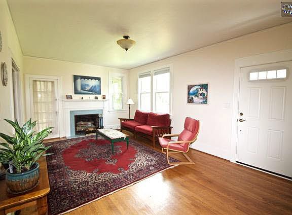 Painted brick with Shandon house charm preserved alongside a fabulous modern kitchen! Sunny living room with high ceilings and fireplace; separate well proportioned dining room; new kitchen with beautiful granite counter tops, a gas range, and a large area for counter top dining. Kitchen opens to sitting area with a wall of bookcases. Sun room or third bedroom is just steps away with French doors opening to the deck. Two bedrooms, an updated hall bath, and a half bath for guests are located off central hall. Large laundry/mudroom off kitchen. Nice backyard with pear and apple trees and thriving grape vines. Garage out back with plenty of off street parking. Great Shandon location minutes to USC!