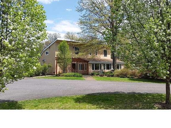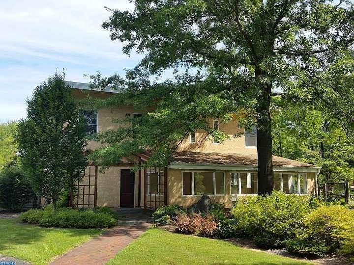 Adjacent to hundreds of acres of the 5,283 acre Nockamixon State Park, Nockamixon Retreat is an updated passive-solar contemporary stucco home offering privacy and tranquility. The 7.74 acre parcel is situated near the foot of Haycock Mountain so the views are serene and bucolic and there is a small creek running along the property boundary. A 3-stall stable with electric and water surrounded by 1.5 acres of fenced paddock is ideal for a horse or sheep or dogs. Live off the land and grow your own in the fenced garden, also with water and electric. Enter from the flagstone patio with redwood pergola into an open plan with clean lines and vaulted ceilings. The main floor provides the perfect flow for entertaining with kitchen that is open to the great room with exposed beams, and the large south-facing dining room or sun room with 2014 Andersen windows providing views of the grounds and surrounding woods. The updated kitchen with granite counters and stainless appliances includes a new LP range and a separate prep sink area. Off the kitchen is the Florian greenhouse, complete with brick floor, water, wall heater and thermostat-controlled fan, a great place to put your green thumb to work, or perhaps an al fresco dining room overlooking the tranquil koi pond with waterfall and beautiful landscaping! There are two 1st floor bedrooms and full bath. Upstairs is the main bedroom with ample closets plus a fourth bedroom, and the large tiled bathroom with soaking tub, walk-in glass shower and laundry closet with included stackable washer/dryer. The high velocity HVAC heat pump was installed in 2006 as was the septic system. Boating, canoeing, kayaking, hiking, mountain biking, horseback riding, swimming and hunting are literally within walking distance. 80 minutes from NYC.
