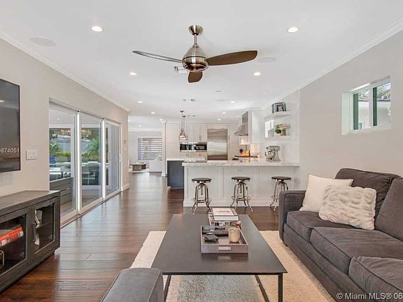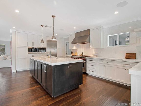 Situated on an oversized lot this residence was completely rebuilt in 2016. The redesigned floor plan is bright and airy offering 3 spacious bedrooms and 3 full baths adorned in Carrara marble. The gourmet chefâs kitchen is complete w Wolf, subzero, meile appliances, custom cabinetry and Calcutta gold counters. The sun kissed master suite offers serene views of the heated saltwater pool and shell stone patio, 2 custom walk in closets, and luxurious master bath. Other features include engineered wood floors, Restoration Hardware bathroom vanities, mirrors, ceiling fans, light fixtures, and hardware, Control 4 smart home system, motorized blinds, plantation shutters, surround sound, security system, impact windows and doors, Alfresco summer kitchen, gas range grill and firepit, 2 car garage