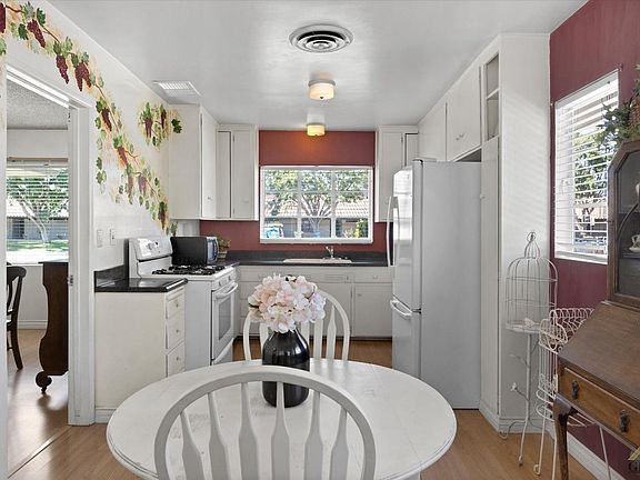 Oleander charmer 3-2 with curb appeal has gated extended drive way leading to detached garage. Home has been lovingly cared for and has a traditional floor plan large kitchen space with dining area that's just outstanding for those happy gatherings around the table and just plain living life. Large living room with brick fireplace and french doors, custom built-in storage & bookshelves. Spacious bedrooms and 2 baths. Lots of built ins/cabinets throughout home for storage. Cozy formal dining with porch view. Home boasts energy efficient solar. Seller recently upgraded a/c ducting throughout home. When entering backyard you see beautiful apricot tree ,mature landscaping, fenced grass area and additional entertaining spots including shaded lattice pergola patio. There is some original hardwood in home. Storage for boat or toys inside gated area, garage has extra storage room. Walking neighborhood with easy access to downtown and freeways.