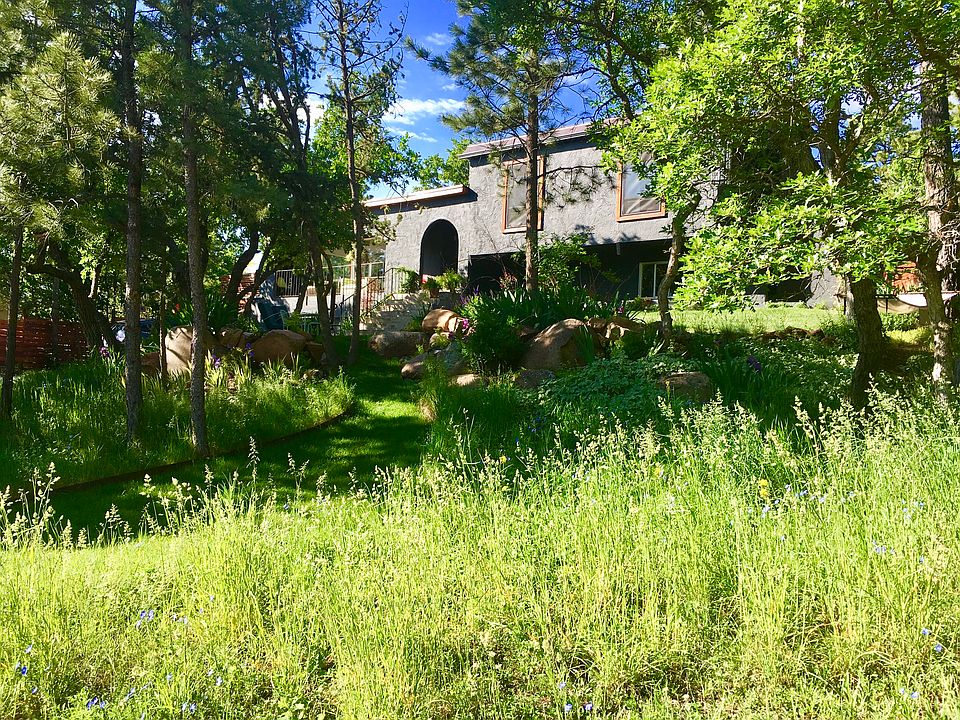 Unique, light and bright with custom aesthetic. This expansive, open-concept, multi-level home has been extensively renovated since 2016. With new insulation in walls and attic, new roof, Bosch and Thermador appliances, new xl water heater, new boiler, wood-burning fireplace, floor-to-ceiling tile, and natural sustainably harvested bamboo floors throughout. High-end finishes with custom steel accents. All cedar fencing, organic vegetable gardens and native wildflower/grass meadows (all gardens have been amended with loads of compost and quality soil), heated greenhouse, children's play area, beautiful lawns, two car garage, chicken coop/rabbit hutch and storage shed. Finished walkout-basement with media/workout room. Jacuzzi tub and glass showers. A gorgeous home, in an awe-inspiring setting; feels like you're living in a treehouse! Some small projects still to do. What we love about this home: Beautiful, quiet neighborhood nestled in an outdoor lovers paradise, overlooking the cityscape of beautiful Colorado Springs. The neighborhood boasts an assortment of wildlife and bird watching, hiking, equestrian trails and facilities, archery, tennis, basketball, mountain biking, cross-country/obstacle courses, maintained soccer and football fields, field houses and lovely picnic spots. A kid's or just kid-at-heart's dream! Convenient to downtown and the mountains in the top school district (Cheyenne Mountain District 12) in Colorado. Willing to work with and compensate buyers' agents.