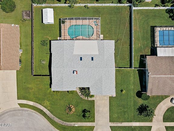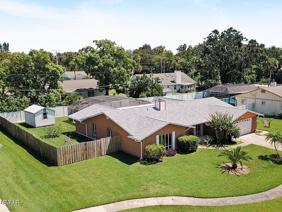 Resting on a quiet cul-de-sac street in South Daytona, this beautiful and upgraded concrete block home pool home is ready for new owners! This 4 bedroom 3 bathroom home offers over 2,200 sq feet of under air living space and upgrades galore. Through the glass insert front door you are greeted with new beautiful flooring, high ceilings, and a view of your outdoor entertainment area! To your left is a nicely sized room with large front facing windows, perfect for an office and currently used as a man cave complete with a pool table! To your right is your dedicated dining space - open but separate, with a walk through to your upgraded kitchen! Light and bright cabinets beautifully accent the stone countertops while the stainless steel appliances are sure to impress. Large window over the sink overlooks the pool so you don't miss a beat! Into the main living area, a beautiful brick fireplace bring a warm feeling to this room while large french doors lead you outback to your covered patio - which then opens to your beautiful pool deck with screened inground heated pool complete with water features! Fenced in backyard keeps this area private and the yard space is perfect for kids or a dog! Yes, the shed out back stays! Off of the living room are three of your bedrooms and two of your bathrooms. The bedrooms are nicely sized with deep closets and the bathrooms feature classic shower/tub combos. O The master suite is located on the opposite side of the home, allowing for maximum privacy for owner and guest. It's nicely sized with an ensuite bath you will love! Large french doors lead you to your pool deck. The bathroom is upgraded with a stand up shower and a vanity deep enough for all of your belongings! This home is beautiful and has been upgraded top to bottom. The roof is May 2023, the AC is 2018, and 2016 fence! Solar powered Arlo cameras will stay with the home, and beautiful fig trees do as well! This home is huge, has it all, and is waiting for you. Call today for your private tour!