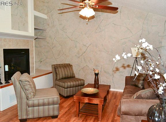 Nestled among fruit trees and Aspens, this updated, cul-de-sac home adjoins Association Open Space and Indian Peaks Golf Course. Artist-autographed Collage wall; new exterior/interior paint; new hardwood floors; new kitchen granite and s/s appls; new marble in baths; new gas fireplace; covered Redwood porch (a rarity in Village Green); plantation shutters; unfinished basement ideal for expansion; finished 3-car garage; security system; low Association fees and low utility bills. A terrific offering near community park and playground.